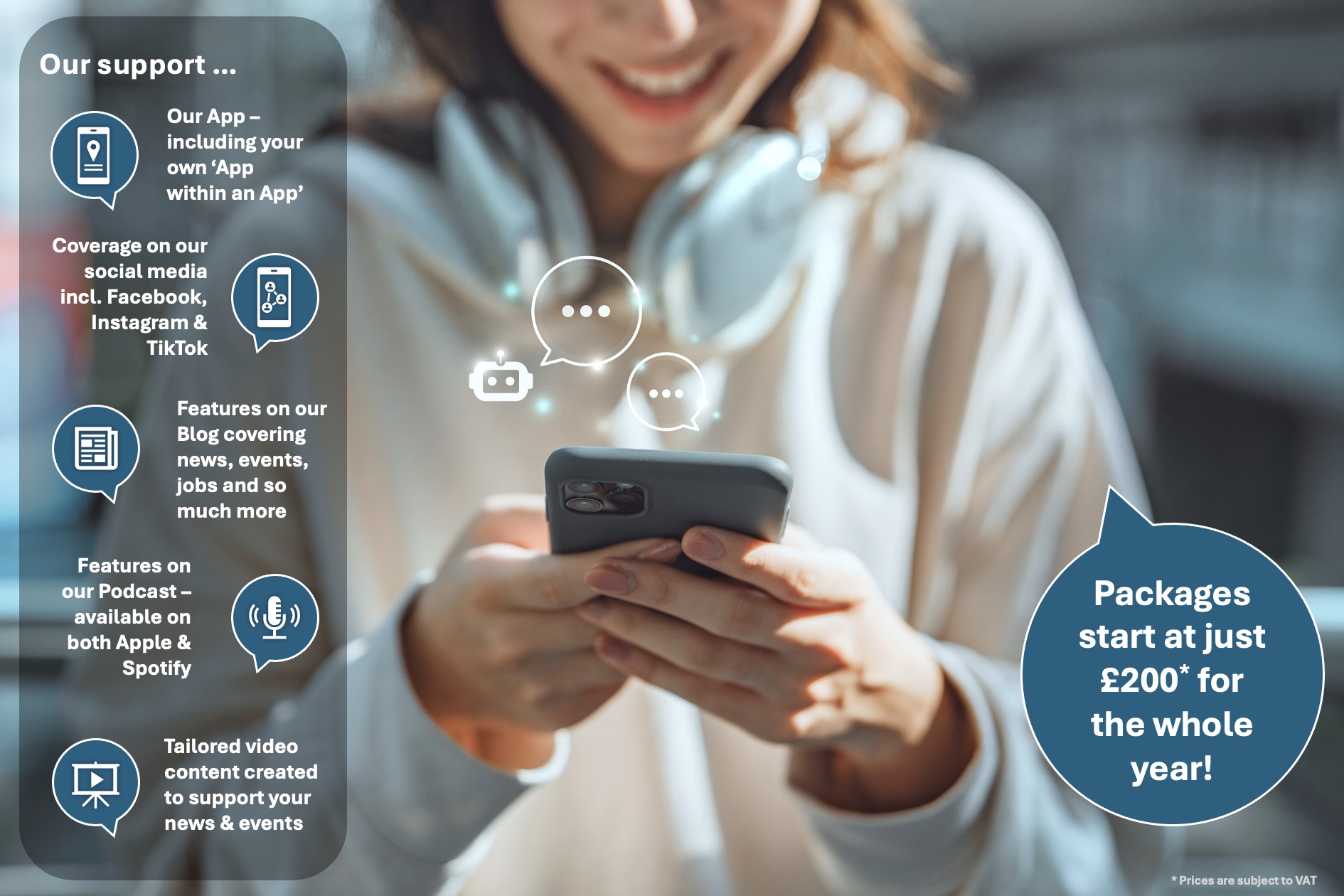 We have built a combined digital audience of more than 160,000 – followers, readers, viewers, listeners, e-shot subscribers as well as those now downloading our new app. And we are inviting businesses, organisations and communiuty groups across our area to sign up to our support packages – support that will showcase your offering and deliver benefits through increased coverage and reach …